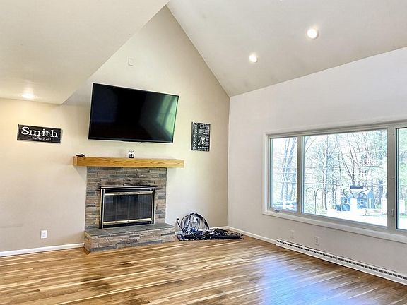 Sweet Oversized Contemporary Lofted Cape in Beautiful Scenic Setting. Huge Open Floor Plan With Gorgeous Newly Refinished Hardwoods and a Soaring Vaulted Ceilings. Main Level Has Kitchen, Dining, Living Room Plus Three Bedrooms And a Updated Full Bath. The Second Level Includes a Huge Lofted Family Room With Balcony, The Large Primary Bedroom, Beautifully Remodeled Full Bath and Bonus Flex Room For Office/Workout/Crafts -Makes an Awesome Primary Suite! Great Closet Space. A Full Unfinished Basement is Great For Storage or Future Expansion. The Stunning Outdoor Space is Newly Fenced and Includes a Deck, Custom Stone Patio With Firepit, and Stunning Professional Landscaping! New Septic Installed 8 years ago, Architectural Roof, Vinyl Siding, HW Tank Replaced, Natural Gas Heat. SHOWINGS START IMMEDIATELY. SELLER RESERVES RIGHT TO ACCEPT AN OFFER AT ANY TIME