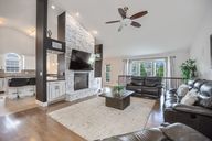 See thru fireplaceWalk-in pantryLarge family roomWorkout roomCustom barCovered patioNewly remodeled kitchen