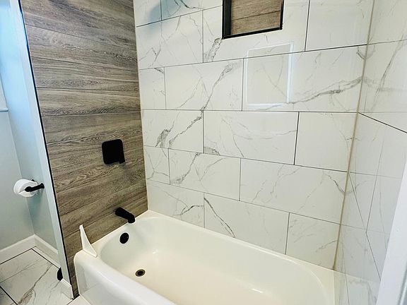 Modern kitchenStylish bathroomFresh flooringRainfall showerNatural lightMarble tileNew cabinets