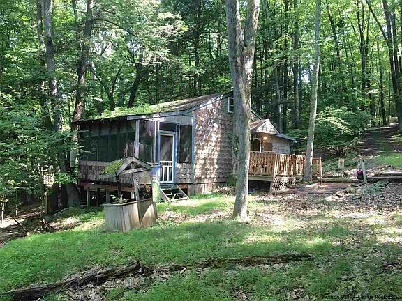 If a cozy cabin in the woods is your dream...as it is for many, this 14 acre parcel between High Falls and Rosendale may be for you. A gravel driveway off a quiet country road leads down to a glade where the 1 bedroom 1 bath cabin is perched above a year round stream. A sleeping loft above the kitchen, a screened in porch, and multiple decks give you plenty of relaxation options. There are massive stone outcroppings on the land and ancient trees, affording your complete privacy. Unused for several years, the cabin needs some TLC, but is fully usable while you spruce it up or build something new, after all, this is 14 acres! A drilled well and cesspool are in place, as is electricity. The possibilities are abundant...a hunting cabin, charming woodland getaway, artists retreat. Minutes from the Spring Farm Trailhead of the Mohonk Preserve, the sweet villages of High Falls and Rosendale, and withing 15 minutes of Kingston and New Paltz. An exceptional value in the much desired Hudson Valley, this one won't last!