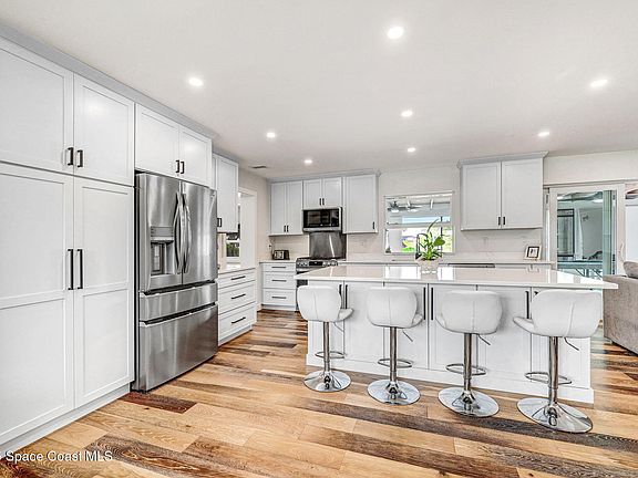 LUXURY LIVING ON THE CANAL! Passionately fully updated 3 bdrm+ game room + office + coffee/reading/craft room, 2 bath POOL home featuring a METAL ROOF, IMPACT WINDOWS & SLIDERS, open floor plan, brand new elegant, eat-in kitchen w gas cooktop & oven, Kraft Maid Premium Cabinets incl. large Island Bench, French Door Fridge/Freezer, Dishwasher, Gas Double Oven/Stove Top Microwave/Range. Every detail was lovingly updated to create a true move-in ready retreat! The spacious primary suite is where you'll find the private office OVER LOOKING THE WATER and just off of the kitchen is where the relaxing nook is ready for reading, relaxing and inspiration. The incredible outdoor living shines with a NEW SPARKLING POOL, a stylish PERGOLA seating area, elegantly landscaped dock and NAVIGABLE CANAL ACCESS! With the unbeatable location - just a few minutes to the ocean, this property combines elegance, comfort and coastal convenience, truly a rare find