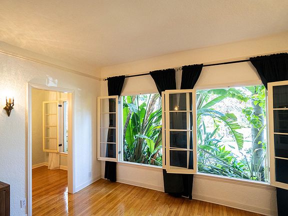 Upon entering the 1920's Spanish At Deco building you'll be swept away to another time. Beautiful vintage art deco lighting fixtures, period-correct furniture, and perfect accents pieces line the walls to let you know this is not your typical Los Angeles apartment. This lower unit is a spacious 1 bedroom, 1bathroom with loads of sunlight. The original hardwood floors have been resurrected and completely restored throughout the unit. The kitchen has been also been restored with art-deco tiling, a vintage stove, garbage disposal, and a dishwasher. The quaint dining area is set off perfectly with a beautiful vintage chandelier. The living room features two large windows that open to the beautifully tree-lined street. The office area is perfect for work at home and features glass doors to close off when guests arrive. The bedroom has ample room for a large bed and furniture. Vintage sconces line the walls with romantic mood light. The bedroom also features a walk-in closet. The bathroom completes the apartment with art-deco tiling and art deco fixtures. Original hardware throughout the entire unit, every detail is attended to. Enjoy your morning tea or read a book from the outdoor balcony area overlooking the best block in the neighborhood. The building is surrounded by lush landscaping, flowers, and a fountain. Looking to get some sun? Outback there is a sundeck and seating for you and your guests to enjoy. The building is located very close to The Grove and Larchmont Village. *unit will be unfurnished