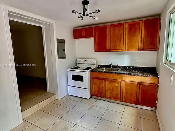 This cozy 2-bedroom, 1-bathroom rental in the vibrant Edgewater neighborhood offers a bright and open living space. The unit features a functional kitchen with wooden cabinetry, a stainless steel sink, a white stove, and a countertop with a speckled design. The spacious living area includes tiled flooring and a large window that invites natural light inside. The bedrooms provide additional storage with closets, featuring neutral tones and a clean, minimalist design. Located in the heart of Edgewater, you'll enjoy easy access to downtown Miami, the Design District, and waterfront attractions. Perfect for those seeking a practical urban apartment!