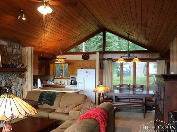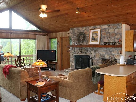 Multi Layered - Long Range Mountain Views in this exquisitely maintained mountain house in Powder Horn Mountain. Too many details to name - Central Heat and Air, Anderson Windows and doors, New roof in 2002, Tiffany lights throughout, over 30K of high end furniture including Lazy Boy, and Amish handmade artisan pieces, updated fixtures throughout ... radon system in place, 1.5 acres of complete privacy, fenced in yard, ample parking... and no steps to front door... Vacation rentals allowed but this masterpiece has never been in a rental program and is PRISTINE. Satellite TV and Internet available. Two decks span the entire length of the upper and lower levels. Tons of light on every level of this home and every bedroom has a view! Property is located in Powder Horn Mountain complete with full time maintenance and security, clubhouse, fitness center, tennis court, half court basketball, three lakes, campground, hiking trails, playground, chapel, post office, 12 miles to Boone and App State. Excellent winter access POA fees are $1555 per year and include all amenities, and weekly trash pick up. State stocked Elk Creek just below community on Elk Creek rd... this one won't last!