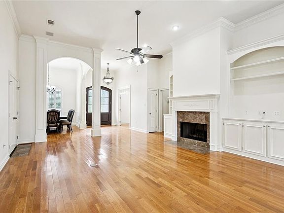 Elegant beauty in Arbor Walk Subd. Magnificent gourmet kitchen w/custom cypress cabinets, slab granite counters, stainless appliances, large island, Nail down wood floors in LR, DR, Primary BR, Screen porch has fireplace outside, and 2 fireplaces inside the house, Plantation shutters, surround sound, sec system and much more, THE WHOLE HOUSE BEEN PAINTED INSIDE IN JUNE 2025