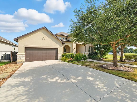 Wake up to peaceful pond views and the beauty of the Texas Hill Country in this stunning 4-bedroom single-story home in Rancho Sienna. With no neighbor on one side, every window frames a scene of water, trees, and rolling landscape—your own private retreat. Step outside to a backyard made for living: a two-tiered stone patio shaded by flowering trees, vine-covered fencing for privacy, and evening lighting that sets the perfect mood for late-night conversations under the stars. Inside, the open floor plan is designed for entertaining, centered around a huge kitchen island that’s every cook’s dream. LVP wood flooring runs through the bedrooms, with the primary featuring custom shelving, while the redesigned laundry adds both style and storage. The garage offers tiered shelving, and a whole-home water softener adds comfort. Best of all, fully paid solar panels keep utility bills incredibly low—the seller’s entire 2024 electric bill was just $569. A HEB grocery store is located in the nearby Bar-W shopping complex along with a wide variety of shops and restaurants to supply your needs. Add in the Rancho Sienna’s resort-style amenities—trails, fishing ponds, pool, gym, dog park, and nearby schools and shopping—and this home isn’t just a place to live, it’s the lifestyle you’ve been waiting for.