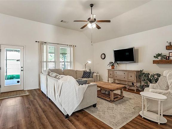 Beautiful 3 bdrm,2 bath hm in The Savannahs.Lg Liv rm w/wall of windows overlooking the extended covered patio.Kit & hall bath w/ granite counters.Large Primary suite-bath w/ granite counters,double vanity,garden tub & lg closet.Office nook outside Primary suite.Vinyl floors in all bdrms, liv room & foyer. NO CARPET! Lg pantry in the kit & gas range/oven.Corner lot w/alleway behind the house & landscaping throughout the yard. Ask for attached upgrades.Convenient to all amenities.Don't miss this one!
