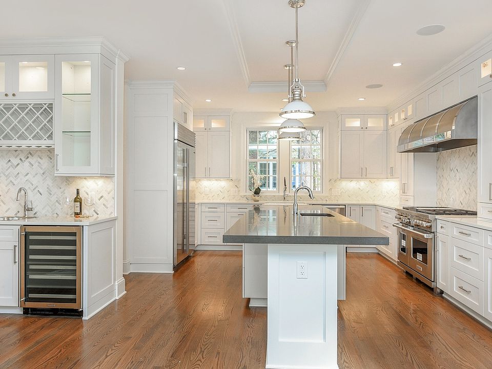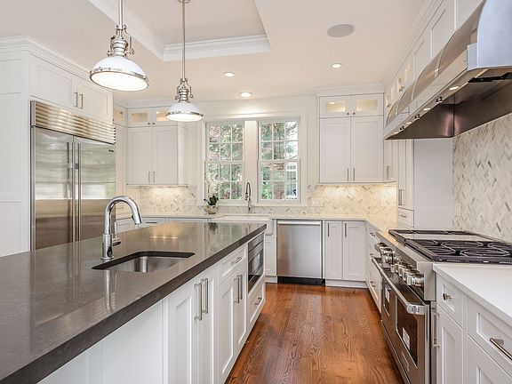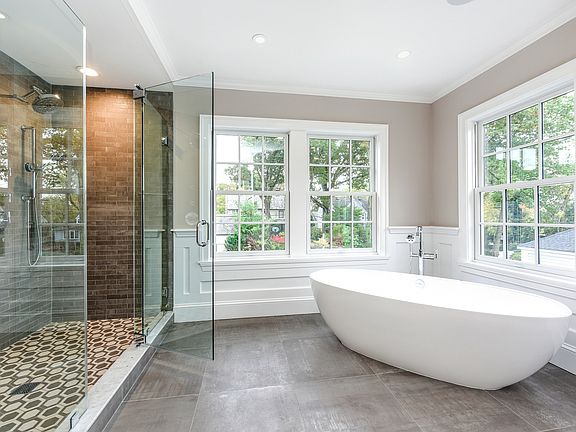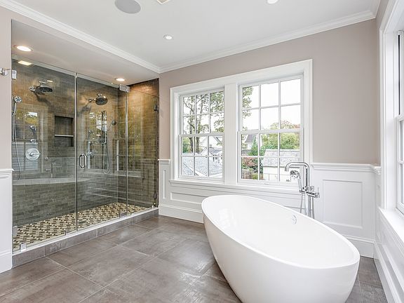 Stunning new construction in the heart of Glen Ridge! This home checks all the boxes with a state-of-the-art gourmet kitchen with highest end stainless appliances, large center island, open to eating area and family room with gas fireplace. Mud room and first floor den/office with en-suite full bath is perfect for nanny or guests. Living room with gas fireplace and formal dining room all with gorgeous woodwork detail. Master suite is perfection with coffered ceilings and his and hers closets, vanity space and exceptional master bath with soaking tub, oversize shower and double sinks. Laundry room on second is so convenient and three other large bedrooms complete the second floor. Finished basement with high ceilings, rec room, possible sixth bedroom and full bath with loads of storage space. Close to schools, and New York City direct train.