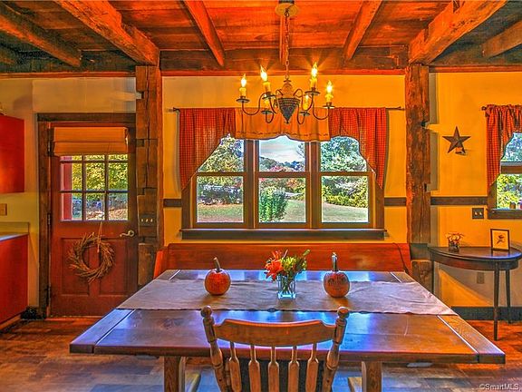 Nestled on a beautifully landscaped acre, this one-of-a-kind Antique home is not for the average buyer. Built in 1790, as one of the original Coventry farmsteads, this house is truly historic. A 3-sided fireplace with original stonework is breathtaking and welcomes you from every room on the first floor. The kitchen boasts buttery rich butcher block countertops and a Vulcan oven with copper surround as the centerpiece. The second floor is a front-to-back master suite which runs the entire length of the house and has its own powder room. Original post & beam construction was built to stand the test of time. Restored in 1986- ensuring none of the old charm was lost. Newer furnace provides both levels with hot air / central air for modern convenience. Propane fuel provides clean and cost-effective heat/hot water. Exterior includes a natural stone walkway and lavishly exquisite gardens complete with patio and firepit. Minutes to: Nathan Hale Homestead/Coventry Farmer's Market, Coventry Lake and beautiful walking trails. Property sold "as-is."