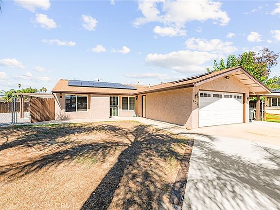 Charming 3-bedroom, 2-bath home nestled on a quiet cul-de-sac near Park Hill in Hemet. This beautifully maintained property sits on over ¼ acre, offering endless possibilities, RV parking potential, multiple ADU opportunities, a fire-pit area, and plenty of space for entertaining, gardening, or simply enjoying peaceful evenings under the stars. Inside, you’ll find a warm and inviting atmosphere with engineered wood flooring, dual-pane windows. The bright and cheery eat-in kitchen features ample cabinet space, a floor-to-ceiling pantry, reverse osmosis water purification, and updated lighting, perfect for cooking and gathering. The family room offers comfort and charm with built-in shelving, a ceiling fan, and easy access to the covered rear patio, ideal for relaxing outdoors year-round. Both bathrooms have been tastefully updated, and the primary suite includes a mirrored wardrobe and modern finishes. Upgrades include paid-off solar, an upgraded 200-amp electrical panel with 220-volt outlet in the garage (great for EV charging or a gas dryer), a five-year-new A/C, and a roof only seven years old — all the big-ticket items are done! Outside, you have a freshly painted exterior, enjoy mature fruit trees ( Apple, Orange, pomegranate, lime, kumquat and more ) trees with irrigation in a separately fenced garden, and a two-car garage for all your storage needs. With no HOA and low taxes, this home offers incredible value and flexibility.
