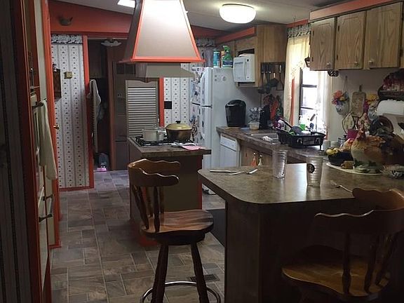 A very nice home on over 2 Acres, a Must See ! The refrigerator, dishwasher, and microwave is only 3 years old. Features a covered back porch, two metal sheds, and a 2-car carport. A metal roof with 2 skylights and and a open patio.