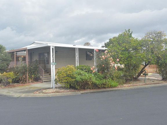 Presenting a mobilehome at The Tropics. This 2bedroom, 2bathroom, 2tandem parking spaces sit on a corner lot next to 3additional parking spaces for your guest visiting. Surrounded by a garden of flowers and fruit trees for privacy. The primary bedroom suite has walk-in-closet and stall shower bathroom. Laminate flooring throughout the home. A built-in hutch to keep your formal dishes in the dining area. A laundry room with washer and dryer included. Complete kitchen appliances - dishwasher, refrigerator, stove/oven range, etc. Outdoor shed for extra storage. Put your final finishing touches and call it home sweet home in this Senior Community of one 55+ and 35+ for co-occupants. Close to public transportation, major freeway, parks, shopping, entertainment and dining.