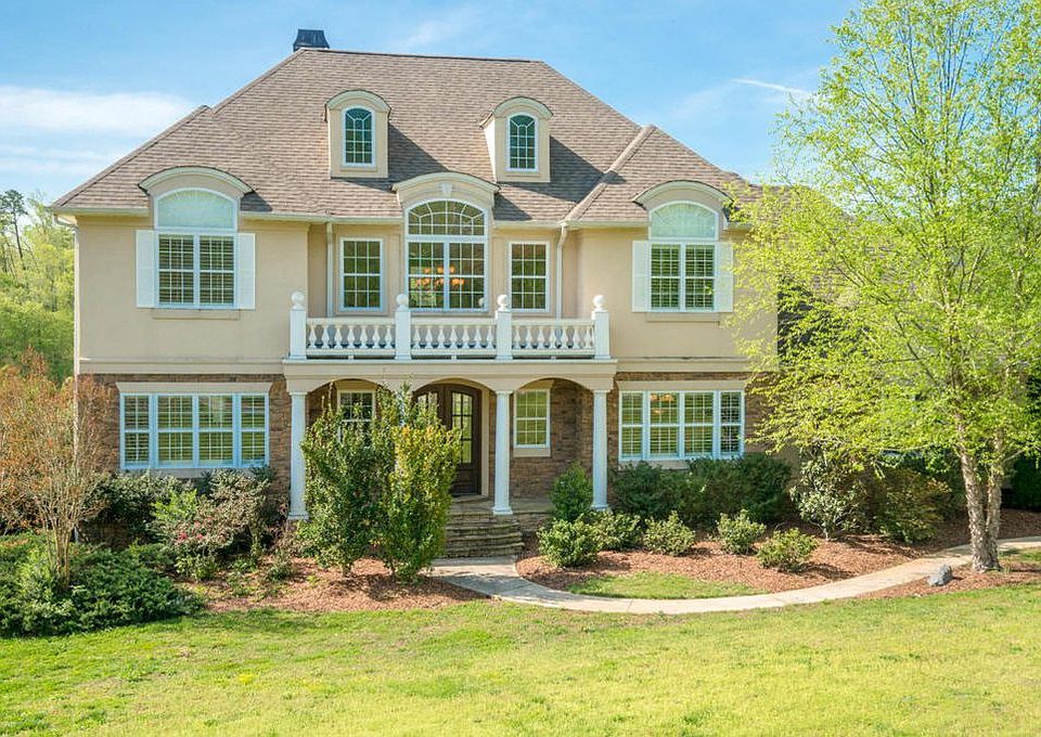 Welcome to this exquisite French country estate situated on 1 acre just 15 minutes from downtown Chattanooga! Boasting nearly 4,200 sqft of living space, this home is built for entertaining and includes it all! Come see the custom finishes on this expansive home with 5 bedrooms, a large billiards room, an expansive movie room, a covered back patio, and a separate stone patio and grilling station with a wet bar enclosed by a large pergola. The downstairs living room features built-in shelving, a gas log fireplace, and coffered ceilings overlooking the large backyard and woods. The kitchen is a chef's dream, boasting granite countertops, a commercial grade gas range, custom French country cabinets, stainless steel appliances, bar top dining and a breakfast nook with wonderful views. A separate formal dining room is included as well. Upstairs is a beautiful landing full of natural light as you step into the classic billiards room with a vaulted ceiling, custom built-in shelving and a second gas log fireplace and mantle. Next to this is a movie room large enough for the whole family to spread out and already wired for surround sound. This room includes custom decorative soundproof paneling throughout. In addition, four bedrooms are upstairs, but three rooms are currently being used as an executive office, workout room, and student's study room adjoining the fourth bedroom by a large full bath with two vanities and a large linen closet.