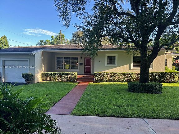 Mid-Century Charmer Inviting 3-Bed, 2-Bath Coral Gables Gem on tree-lined residential street. Enjoy Bright Living Spaces with Large Picture Windows, Generous Bedrooms and Comfortable Floorplan. Master bedroom features a private bathroom and a large walk-in closet. Laundry in Attached 1-car garage. 11,000 SQFT lot with spacious yard. Walking distance to Merrick Park, Coral Gables Youth Center, and Coral Gables Library. Just minutes from Miracle Mile's shops and restaurants, the iconic Biltmore Hotel, and the University of Miami. Miami International Airport is only a quick 15-minute drive away. Available for immediate occupancy.