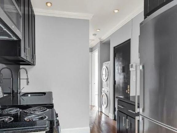 NO FEE Large, Gorgeous 3 bedroom 1Bath apartment with private roof deck! Wonderfully accented unit features condo finishes, including a marble bathroom with rainforest shower head, washer & dryer, and a granite kitchen with gooseneck faucet and stainless steel dishwasher, wine cooler, and microwave. Apartment is accented by recessed lighting, wide plank oak flooring, exposed brick, pinpoint halogen lighting, individual climate control and video intercom. Available for immediate move-in. Located just steps from great shopping in the Theatre District, restaurants including Blue Ribbon and Baked by Melissa. Conveniently located around the corner from the M11 and M50 bus lines and close to several subway lines, including the C, E, and 1 trains.