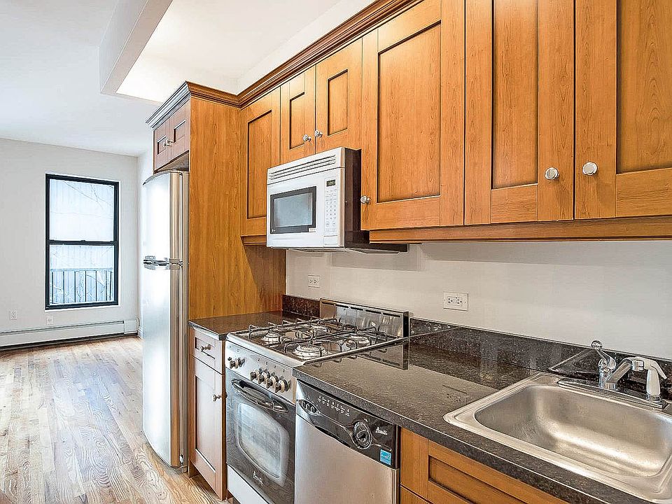 This charming elevator building in Midtown West, has commercial-grade laundry facilities with a small private roof area for tenants use. All of your basic necessities are literally half a block away such as CVS and D'Agostinos Grocery store with plenty of coffee shops and shops within a blocks radius on 10th avenue. This North facing 1 bedroom unit features an open kitchen with granite counters, stainless steel appliances and cherry wood cabinetry. The bathroom has a large glass enclosure, chrome fixtures and fully tiled in tumbled marble. Wood floors throughout the nicely proportioned living space. Great building, great location and convenient to several subway lines, A/C/E and 2/3 trains. Theatre District, Lincoln Center, and Central Park.
