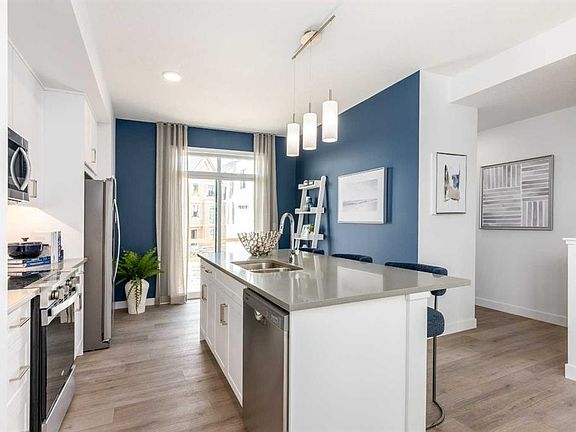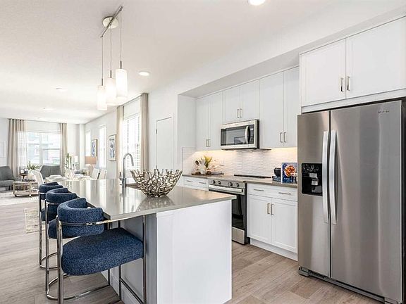 OPEN HOUSE - SUNDAY NOVEMBER 2ND - 12:00PM - 2:00PM - THIS IS WHAT HAPPENS WHEN SOMEONE WITH TASTE BUILDS A TOWNHOME. 309, 437 Alpine Avenue SW is proof that design can feel intentional without feeling forced. Every choice—from the MATTE BLACK HARDWARE to the calm flooring tones—lands exactly where it should. The result is a home that feels composed, confident, and quietly refined. The PRIVATE WEST-FACING ENTRY feels residential in the best way—no shared corridors or echoing stairwells—just your own address and an intentional sense of arrival. Inside, the palette stays grounded: warm Toasted-Almond LVP floors, QUARTZ COUNTERS that actually reflect daylight instead of glare, and BLACK FIXTURES that give definition without shouting. The main floor flows the way life actually happens—work and breakfast colliding on one KITCHEN ISLAND, coffee drifting onto the EAST-FACING BALCONY, dinner stretching past sunset because the space simply works. Upstairs, THREE BEDROOMS pull off that elusive balance of practical and personal. The master keeps its composure with a clean ensuite and a closet that doesn’t need to apologize. The other two are flexible—guest-ready, office-worthy, or both—and the laundry is mercifully where you live, not where you forget. Downstairs, the TANDEM DOUBLE GARAGE doesn’t just park cars; it swallows gear, bikes, and the freezer full of “backup meals.” It’s the kind of everyday functionality that rarely gets design credit—but deserves it here. And beyond the front door: Alpine Park. A southwest community built around connection, walkability, and a sense of design that actually matters. Sidewalks lead to cafés instead of cul-de-sacs, and parks show up right where your day needs a reset. Possession is set for November 2025. Bring your sense of taste—everything else already fits. • PLEASE NOTE: Photos are of a finished Showhome of the same model – fit and finish may differ on finished spec home. Interior selections and floorplans shown in photos.