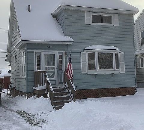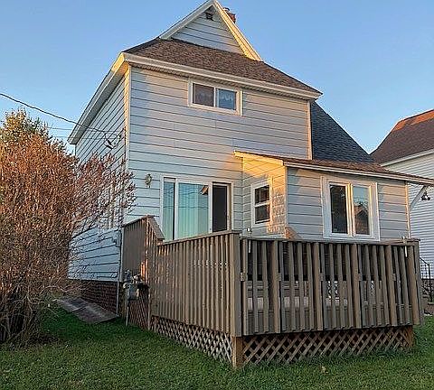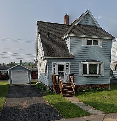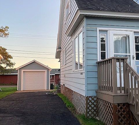 Two story home near the football field with a back deck view of Lake Bancroft featuring 2 second level bedrooms and a spacious bathroom. Main level has a bright open layout with hardwood floors, front and back enclosed entries, a small detached one car garage and alley and street vehicle access. Full open basement, featuring a laundry with a washer, natural gas dryer and additional storage space. Home has a Peerless gas boiler ( professionally serviced October 2025 ) with cast iron radiator heating system and natural gas domestic hot water heater. Upgraded electrical. Durable metal siding and fascia with newer roof shingles on both the house and garage. Situated in a “Great location” close to Lake Bancroft, downtown , schools, churches, Bell Hospital and quick access to US-41. October 2025 street improvements recently completed include city water, sewer, paving and sidewalks.