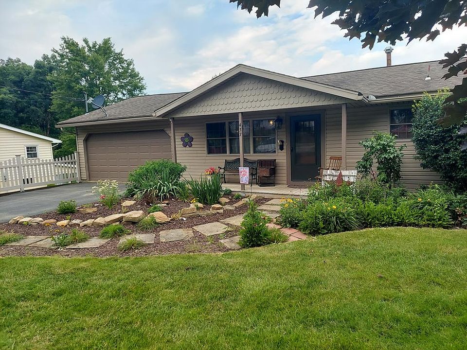 This stunning ranch home is first floor living at its finest! Located in Franklin, PA (Rocky Grove/Valley Grove School District), this home offers 3 bedrooms, 2 bathrooms with first floor laundry. The spacious master suite has a vaulted ceiling and skylights with enough room for your own workout area or office space. The bathrooms have been updated with the master bathroom having a walk-in shower and the main bathroom boasting a 6 foot bathtub/shower. A large living room, comfy custom kitchen and inviting dining room provide plenty of space for family gatherings . Enjoy the outdoors sitting on the covered back porch or have guests over for outside entertaining on the additional Trex deck. Full basement (with additional wood shop area), shed and under-porch storage allows for ample storage. A 2-car attached garage with paved driveway allows for easy access to the mudroom/house or front door. This property has well maintained landscaping as well as trees and raised bed gardening.