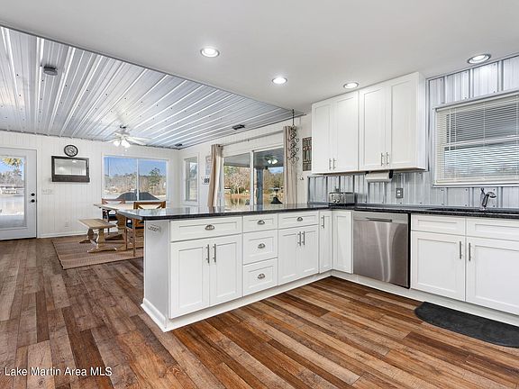 One-of-a-kind point peninsula lake home completely surrounded by beautiful Lake Martin! With nearly 625 ft. of water frontage, this three bedroom, two bathroom FULLY FURNISHED home is pure PERFECTION! Enjoy lake views from just about every room in this home. Two large living areas, kitchen with granite countertops and stainless appliances, metal accent ceilings, covered patio and covered deck on the lake side! It just doesn't get much better than this-- convenient to D.A.R.E park and many other of Lake Martin's ''favorites''! Waterfront features include seawall, dock with floating dock, covered boat house, seadoo ports and a lakeside fire pit, perfect for entertaining everyone!