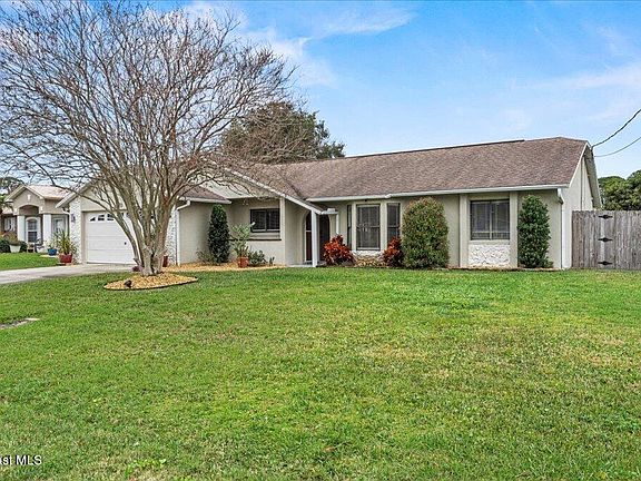 PRICE REDUCED AND NEW ROOF (by closing) Pristine Pool Home! The Open Floor Plan overlooks a beautiful Screened Pool. Kitchen Updates include stainless steel appliances granite counter tops, contemporary backsplash and a large island, perfect for entertaining. This lovely home has tile and laminate flooring throughout. Relax in the soothing hot tub before taking a dip in the lovely screened pool, all the while feasting your eyes on the tastefully landscaped back yard with Kumquat, Blueberry, Banana and Lemon Trees. The wooden deck off the patio is perfect for outdoor grilling. Conveniently located to Kennedy Space Center, Amusement Parks and only 36 miles to Orlando International Airport. Your Florida dream starts here.