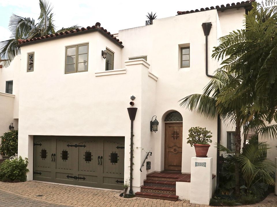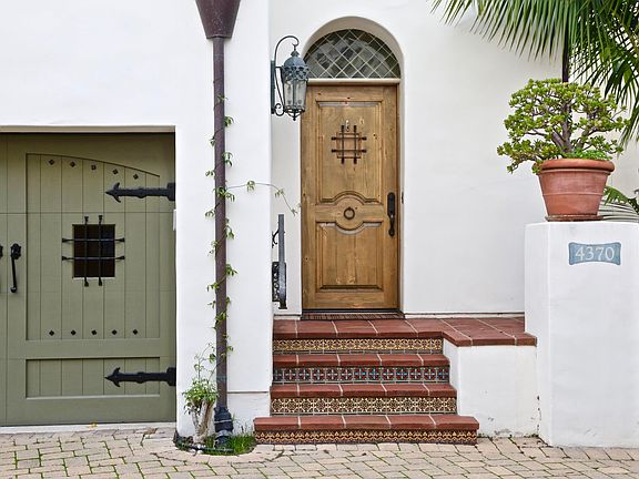 Come home to Las Palmas Viejas, a unique community created in 2006 as an homage to Santa Barbara's Golden Age of Spanish Revival style. Designed as a loving recollection of a Spanish village, 12 homes all open onto a dramatic courtyard/motor court. At the center, 4370 welcomes you with modern amenities and exquisite artisanal detail. Hand-tooled ironwork, custom tile and stone, rich woodwork, and exciting architecture grace this home from the entry through the flow of each room and zone. The kitchen is a gift to the serious chef, with all-Viking refrigerator, microwave, and 6 burner range, island prep sink and walk-in pantry. The kitchen and dining area open onto a lovely, fully enclosed and private walled patio of 550 sq ft. Upstairs are 3 generous bedrooms, two with cozy balconies. The master features two large closets and luxuriant en suite bath. Above, the spacious 500 sq ft roof deck offers wet bar, fireplace, and dramatic red tile and mountain views. The private two-car garage has indoor access. This unit has only a part of one wall in common with neighbor. Roof deck and patio combined provide over 1,000 sq ft of private outdoor space.