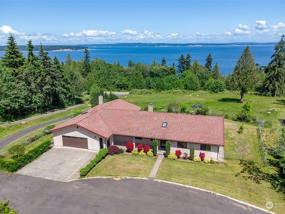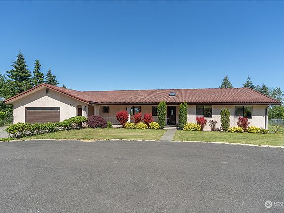 Embrace the warmth of this hacienda-style home complete with stucco siding, a terra cotta color tiled roof and really big views of both the Shipping Lanes and the Cascades. This is the perfect property and location for an in-home business with 3+ sunny acres and a large, detached shop/garage...perfect for a vineyard, a kennel or ? Fenced for horse or other animals. The yard around the house is fully fenced and offers big views from the oversized and partially covered patio. Inside, enjoy those same sweeping views plus the casual, comfortable style of single-story living. Imagine how stunning this welcoming home can be with its wide-planked pine floors and an updated kitchen and bathrooms!! Store your boat or RV under covered storage too.