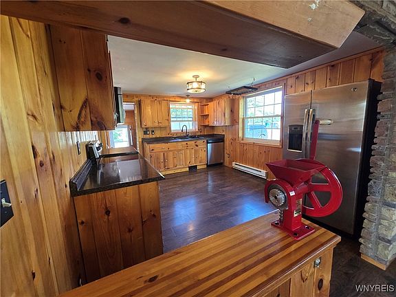 Situated perfectly between Buffalo and Rochester, you’ll enjoy the serenity of rural living while being close to village amenities, shopping, and dining. The best of both worlds — tranquility and convenience! Square ft difference is due to heat added to the laundry room per the seller.
