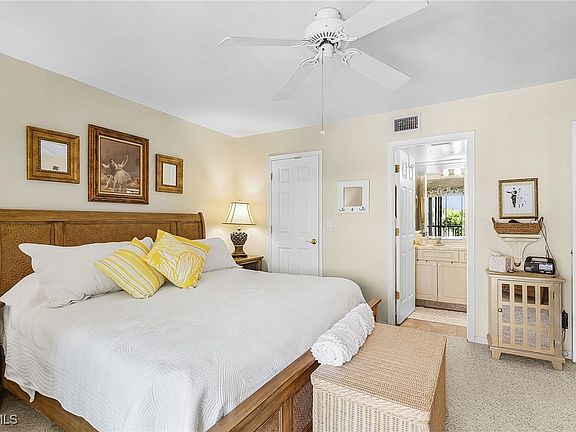 2 bed/2 bath condo in Casa Marina! Wonderful unobstructed views of the canal and EBIA walking path. This light and bright condo features a spacious living room with open dining room. There are 2 separate lanai's with metal shutters. The primary bedroom has a large walk-in closet and en-suite as well as private lanai and laundry room with new washer and dryer. The split 2nd bedroom and bathroom is perfect for privacy for guests. Enjoy morning coffee or an evening beverage watching the dolphins and manatees swim and play right from the comfort of this condo. Gulf facing making evening sunsets a delight. Under building parking and secure foyer for added security. Casa Marina is pet friendly. Community pool and EBIA amenities include: Deeded Beach Access, Beach Parking, Tennis, Pickleball, Bocce Ball, Walking Paths, Chipping Greens, Driving Range and Fishing Pier, Boat slips available for purchase or lease for Bay Beach owners. Located on the South end of Fort Myers Beach close to restaurants, shopping, lovers key state park and a quick drive to Bonita, Naples and RSW Airport.