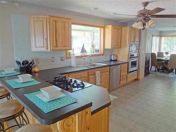 Million dollar views of Gilletts Lake abound in this stunning 4 bedroom 3-1/2 bath contemporary home. Pictures don't do it justice. Entertain family & friends in this open floor plan - fire-lit living rm overlooking lake, gourmet kitchen w/breakfast bar & formal dining. Relax in the stunning master suite w/walls of windows, deck & fireplace too. Den/1st floor Bedroom w/closet. Large 1st floor laundry. Walk-out basement w/ bar leads to deck & hot tub. Sea wall & sandy bottom great for swimming.