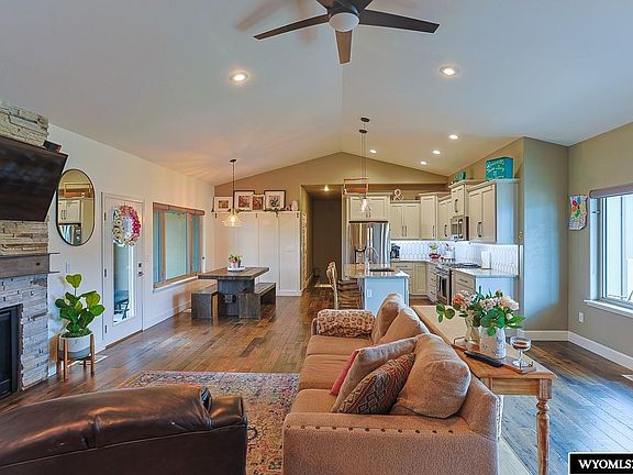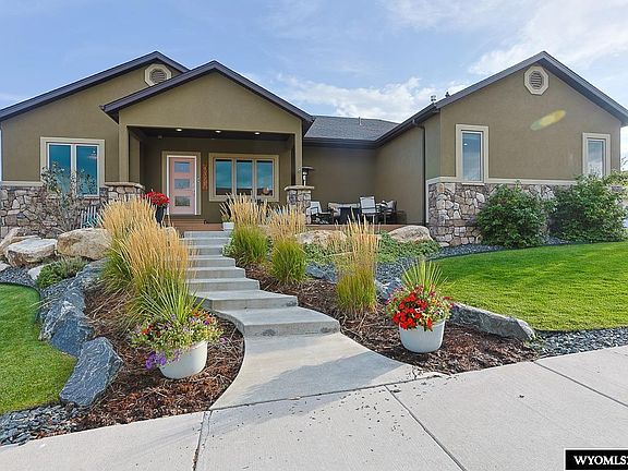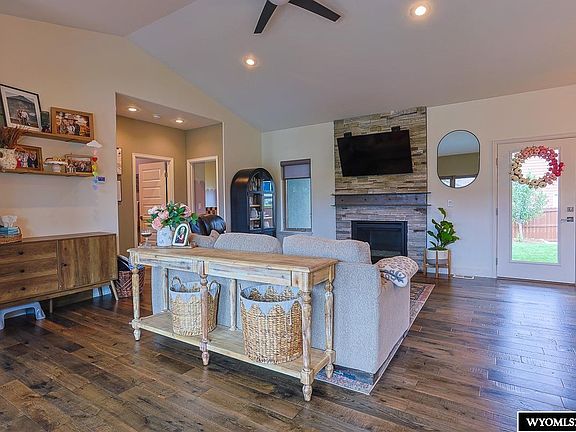 If you’ve ever driven by the corner of Waterford & Gramin Drive and thought, “Wow, someone really loves their lawn,” you’re welcome. This is that house. Built by Masters Construction, this 5-bedroom, 3-bath masterpiece sits on a corner lot with landscaping so dialed in it makes the neighbors quietly rage-weed their flower beds. Step inside and you’ll immediately notice the vaulted ceilings and fireplace stealing the show, because yes, even your ceilings deserve to flex. The kitchen is open, inviting, and ready to witness questionable dinner experiments or elite-level charcuterie boards. The primary suite? Let’s just say it’s designed to make your spouse say, “Well... this is mine now.” And don’t even get us started on the fully tiled, spa-like master shower. Wrapped in full stucco and built with energy-efficient SIP panels (that’s “structurally insulated panels” for the three people who didn’t Google it just now), this home isn’t just good looking, it’s smart, solid, and way ahead of its time. Oh, and did we mention the 3-car garage? Because your toys, tools, and backup freezer full of elk meat deserve better than street parking. Upgrades include: - Custom home by Master’s Construction, Corner lot, Full stucco exterior, SIP (structural insulated panel) construction = more efficiency , Wide plank solid oak floors , Vaulted ceilings, Expanded master shower, All floor joists insulated with blown in insulation , New refrigerator September 2025, In wall home theater speakers (head unit not included), Main level laundry possible with removal of bench, Bosch heat pump for heat and cool = higher efficiency Owner is a licensed Realtor in the state of Wyoming, and a self-proclaimed Master Lawn Keeper. See it today with Tommy Russell 307-267-7606