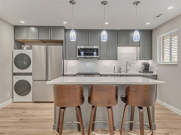 Step inside this freshly remodeled 1-bedroom retreat and feel right at home. Thoughtfully designed with brand-new furnishings, in-unit laundry, and a flexible sleeping setup, it's perfect for couples, small families, or solo travelers looking for a comfortable escape. Whether you're here for work, adventure, or a cozy retreat, this space is designed for comfort and ease! 6 Min Drive to Desert Star Playhouse 15 Min Drive to Ski Resorts (Brighton, Solitude, Snowbird) 22 Min Drive to Downtown SLC KEY FEATURES: Sleeps 3; 1 bedroom, 1 king, 1 inflatable queen mattress 1 Bathroom; 1 full with combo shower/tub Modern and well-equipped kitchen with seating for 3 guests {}MB WiFi and TV entertainment systems throughout the home Has a Pack 'n Play with waterproof bedding In-unit washer and dryer Ground-level unit with easy access to nearby trails and ski resorts Minutes away from Downtown SLC BEDROOM This modern and cozy apartment accommodates up to 3 guests in 1 bedroom and 1 additional mattress. The master bedroom is spacious and well-equipped with a king bed, 75-inch QLED 4K Smart TV, and stylish decor. An additional inflatable queen mattress is provided complete with bedding and pillows for extra guests. For families traveling with little ones, we provide a Pack 'N Play with waterproof bedding for a comfortable stay. BATHROOMS There is 1 full bathroom in this apartment, stocked with all the essentials you need for the duration of your stay. Enjoy a luxurious and refreshing shower experience with the Delta "Ara" designer trim and H2Okinetic shower head, which provides an invigorating, powerful flow. Plus, the Delta thermostatic valve ensures a consistent water temperature, so you never have to worry about sudden fluctuations. KITCHEN & LOUNGE The modern kitchen is fully equipped with stainless steel appliances, quartz countertops, and all essentials for a home-cooked meal. It features a Samsung induction range with AirFry, a 36-inch fridge with an internal water dispenser, and a sensor-cook microwave. The dining area seats 3 guests at a sleek kitchen island. The living area has an 85-inch Samsung QLED 4K Smart TV, a genuine leather sofa, and swivel chairs for ultimate relaxation. OUTSIDE SPACE The exterior area of this home boasts a peaceful, ground-level space. Guests also have access to the amenities and activities that the Murray area has to offer, such as Murray City Park, hiking and biking trails along the Jordan River Parkway, and nearby ski areas including Brighton, Solitude, and Snowbird. Book Today & Let Us Take Care Of You In Murray! Just a Heads-Up! This apartment is located on the lowest floor of the complex, so you may hear some noise from upstairs or neighboring units. While the space is designed for comfort, it is not fully soundproof. We appreciate your understanding and hope you enjoy your stay! 1 Month Minimum Stay No Smoking on Premises No Pets Allowed One assigned covered parking spot, and open unassigned parking on the north side