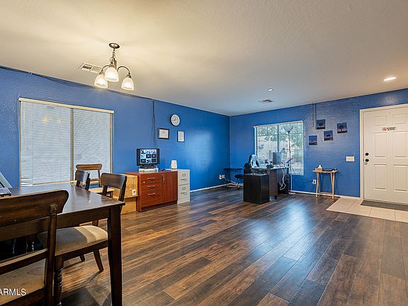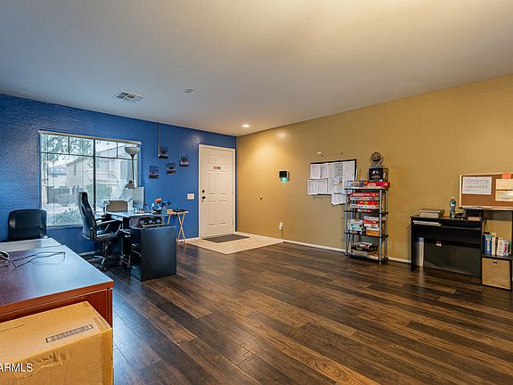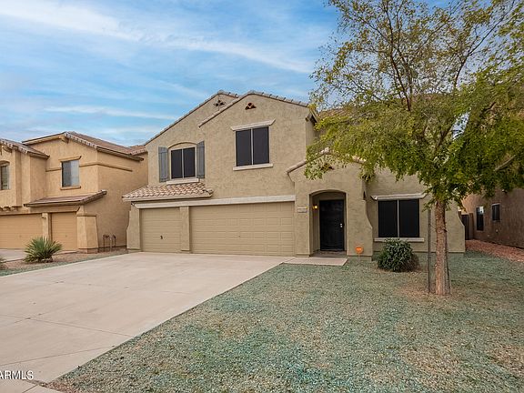 The possibilities are unlimited with this 3200 sq ft 5 bedroom, 3 bath, home in Maricopa! Spacious floor plan offers formal living/ dining room plus family room open to the kitchen, perfect for entertaining. Kitchen features stainless-steel appliances, tons of cabinet & counter space, and center island. With a guest bedroom and half bath downstairs, the home is equipped with whole house fire Sprinkler system. Upstairs you'll find a private office, 3 additional sizeable guest bedrooms, and the large split primary suite with dual walk-in closets, dual vanity, and separate shower & soaking tub. All bedrooms have walk-in closets! The home sits on an oversized lot with covered patio and plenty of space to create your own desert oasis! North/South Exposure with No Neighbors Behind and a 3 car garage, You Don't want to miss this one!