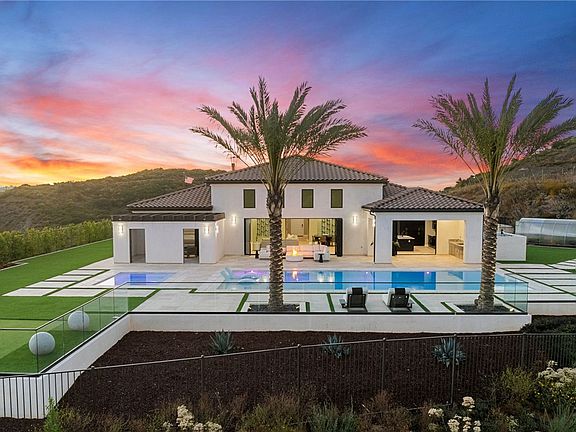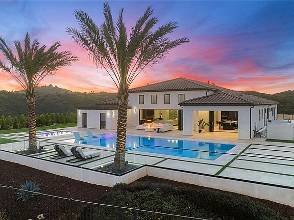 As seen on HGTV and Travel Channel - Welcome to your private Mediterranean paradise, nestled on nearly 4.5 acres in the highly sought-after De Luz community. Offering breathtaking panoramic views and ultimate seclusion, this estate is a true masterpiece. Upon entering, you’re greeted by stunning bi-fold doors that blend indoor and outdoor living seamlessly. The main house features three spacious bedrooms, each with its own en-suite bathroom, along with an office (easily a 5th bedroom) and a media room. An attached casita offers a private retreat, complete with an additional bedroom, walk-in closet, full bathroom, and its own private entrance. The expansive primary suite is a sanctuary of luxury, boasting a spa-like bathroom with a soaking tub, dual-head oversized shower, custom walk-in closets with built-ins, and a serene outdoor retreat area featuring an outdoor shower. The gourmet kitchen is a culinary dream, outfitted with top-of-the-line Dacor graphite stainless steel appliances, a butler’s pantry, full-height refrigerator and freezer, pot filler, and a canopy hood. Bi-fold doors connect the kitchen to the outdoor patio and kitchen, perfect for entertaining. Designed for modern living, the home is equipped with solar power, dual-pane windows, LED lighting, smart Nest thermostats, smart appliances, and tankless water heaters. Dual AC and heating units provide efficiency and comfort year-round. Parking is a breeze with two separate two-car garages. Head outside to your entertainer’s dream backyard, featuring a zero-edge pool with underwater speakers and bubbles, an oversized spa, a fire pit, and a putting green. The grounds include a variety of fruit trees—clementine, navel orange, honey apricot, lemon, lime, avocado, and donut peach—as well as a greenhouse for your home garden. This gated property ensures privacy with Doorbird cameras, while being just 5 minutes from Old Town Temecula and the 15 Freeway. You’re also moments away from over 50 wineries in Temecula Valley Wine Country, Pechanga Resort and Casino, golf courses, dining, and entertainment. Don’t miss the chance to own this extraordinary estate, where luxury and tranquility meet in the heart of Temecula!