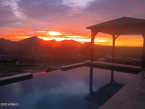 Unrivaled views and resort-style living meet freedom and privacy on this 10-acre mountain-top retreat. The centerpiece is a custom zero-edge grotto pool with a cascading waterfall, swim-up bar, and covered outdoor kitchen—built for unforgettable sunsets and gatherings on the expansive entertainer's deck. The single-level home captures panoramic, million-dollar vistas from every angle, while the land itself offers rare flexibility—splittable acreage for future potential or added privacy. Thoughtfully designed amenities include a state-of-the-art chicken coop, greenhouse, and finished she/he-shed with mini split. There's even a fenced ''dog park'' area complete with grass, shade, and water for your four-legged crew. A meandering brook and bridge welcome you at the entry, setting the tone for this peaceful, prepper-friendly sanctuaryjust minutes from I-17 for an easy commute yet a world away from it all.