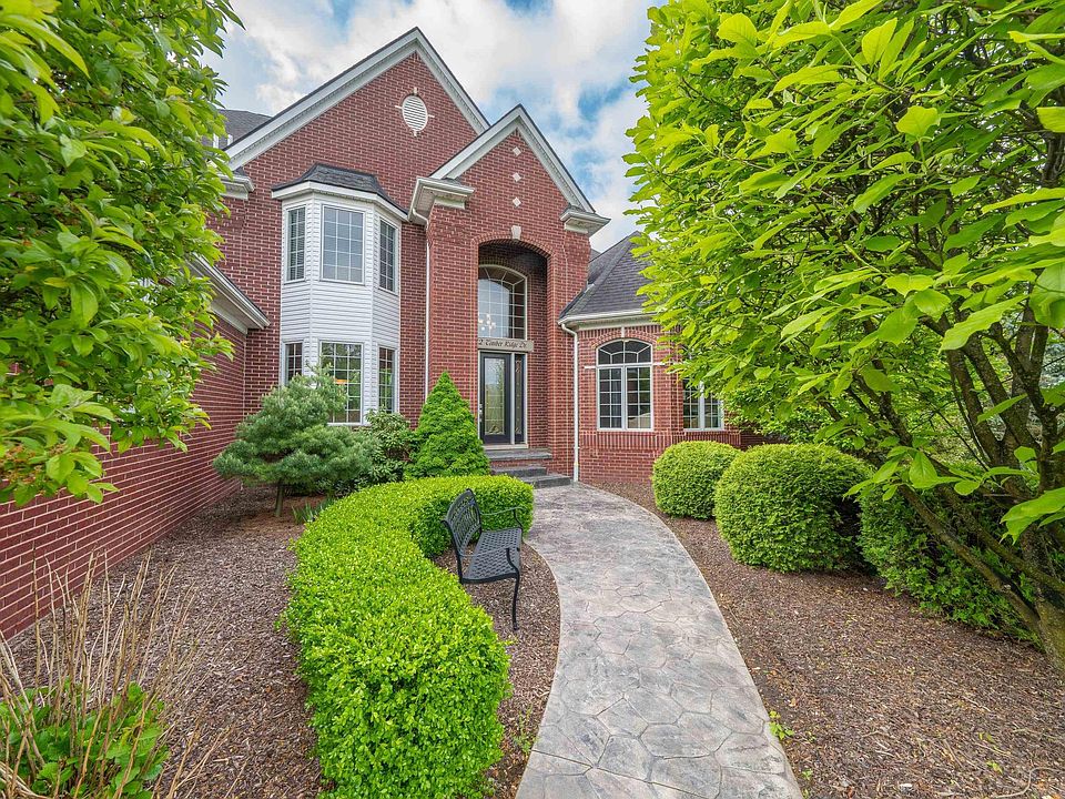 Luxurious & immaculate home located on 2.1 acres. This beautiful home includes fabulous finished walkout basement. Very open floor plan. 3+ car attached garage & 2+ detached w/covered porch. Both have drywalled upper storage/room. A car lovers dream! Sharp upper baths updated 2023. Soaring ceilings, crown moldings,4 fireplaces, massive windows, recessed & accent lighting, granite counters... 1st floor Primary Bedroom offers 2 custom walk-in closets, Fireplace, Roman shower, spa tub, dual sinks. Great Room has wet bar with cabinets that wrap into the spacious Kitchen. 2-way FP to both rooms. Formal Dining R & Eating area in Kitchen. Bonus rm can be 5th BR. Library + 2 office areas. All Bedrooms have private Bath and Walk-in Closet. Impressive Finished W/O Bmst with 2 doorwalls & picture windows. Bar area could convert to a Kitchen. Family, sitting, game & exercise room + stylish full Bath. Patio, Firepit, Reverse Osmosis and Generator.