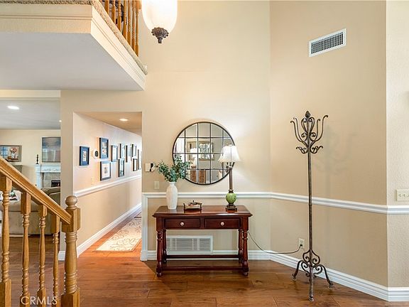 Unlock the door to your new home in the sought after neighborhood or Rancho Highlands. As you are driving down the quiet street, you’ll admire the curb appeal and quaintness of this cottage like home with a lush green lawn, colorful flowers, and a cozy front porch. As you open the door you’ll feel right at home. Spacious front living and dining room that looks out to the front yard perfect for relaxing and hosting guests. Dining room leads to the open and airy kitchen. Kitchen offers plenty of counter space with beautiful granite counters, ample storage, and a warm natural light from the large windows that overlook the entertainers backyard. Family room with fireplace flows to the kitchen and has French doors to the serene backyard. Down the hall on the first floor you have a private bedroom that opens to the backyard, a full bathroom, and laundry room with access to the three car garage. Spacious primary bedroom sits at the top of the stairs with a fully upgraded primary bath with dual sinks, bathtub and enclosed shower. Upstairs you will find two more generous sized bedrooms with their accompanying bathroom. This home sits on a beautiful 1/4 acre lot that has been lovingly manicured for a gardeners delight with so much natural beauty inside and out. This is a home you won’t want to miss! Not only is this home a gem, but the community has so much to offer with it’s clubhouse, pool, sports courts, playground, and picnic area. A hop and a skip to the freeway and the lively Old Town Temecula, minutes to any of the wineries, take a scenic drive to Vail Lake or Lake Skinner, and in Temecula School District.