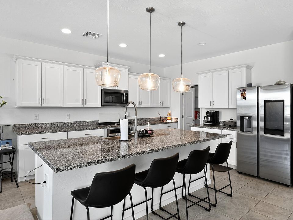 Rv garageSplit floor planOversized master retreatLight bright white cabinetryLow-maintenance backyardLush green turfKitchen boasts granite countertops