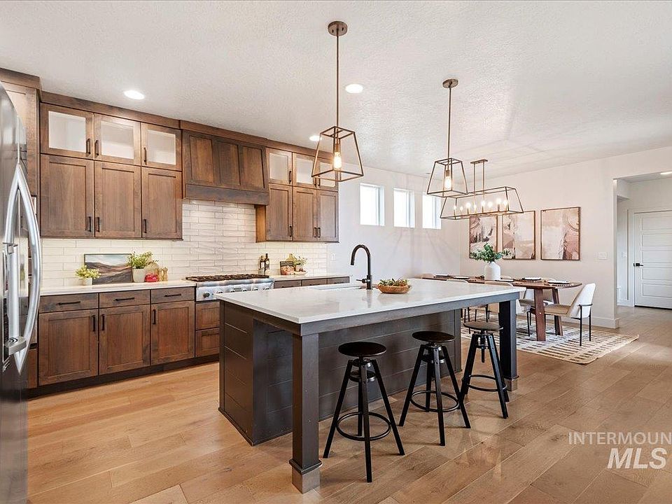 Modern farmhouse living meets comfort in this stunning Barber Junction at Harris Ranch home. A custom stone entry leads to an open, light-filled great room with rich wood floors, a floor to ceiling fireplace featuring neutral colors, and more. The chef’s kitchen shines with quartz counters, a 6-burner gas range, Bosch appliances, walk-in butler’s pantry, and a sprawling island perfect for entertaining. A main level bedroom can easily become a work from home sanctuary with a view. Upstairs, enjoy a versatile loft, tech nook, and a luxurious primary suite with spa-like bath, tiled walk-in shower and dual vanities. A private bonus room with separate entrance, and full bath is ideal for a guest retreat, or flex space. Upgraded smart thermostats and dual zone for comfort and efficiency. Relax on the north-facing porch or enjoy the low-maintenance side yard designed for effortless outdoor living—all steps from trails, dining, and the Boise River.