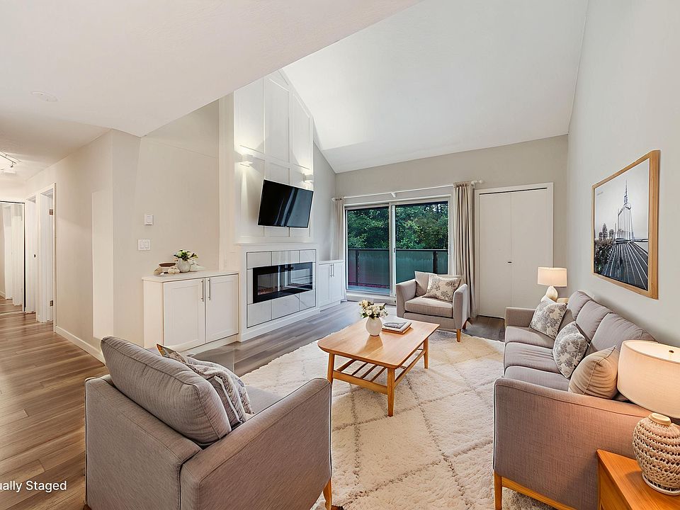 Open floor planVaulted ceilingsTree-lined viewBrand-new stainless steel appliancesElectric fireplaceModern finishes