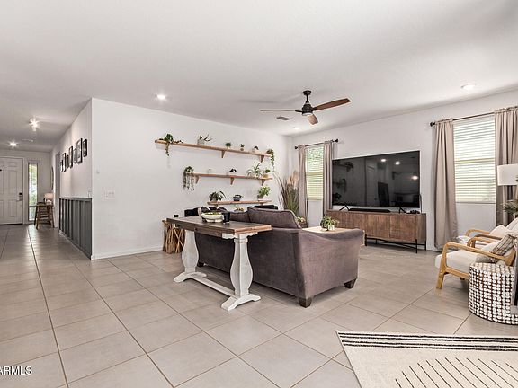 Beautiful home in The Foothills at San Tan Heights! On a corner lot adjacent to a greenbelt, offering fantastic mountain views that enhance the peaceful & scenic setting. It provides 4 beds, 2.5 baths, 3-car garage, & mature landscape. The fabulous interior showcases chic light fixtures, tons of natural light, designer paint, tile flooring in common areas, and carpet in bedrooms. The seamlessly flowing open layout is sure to impress! The impeccable kitchen has SS appliances w/cooktop gas, granite counters, a glass tile backsplash, white shaker cabinetry, and an island w/breakfast bar. The main bedroom boasts a barn door that opens to the ensuite with two vanities, separate tub/shower, & a walk-in closet. Enjoy the backyard with a covered patio & so much room for entertaining!
