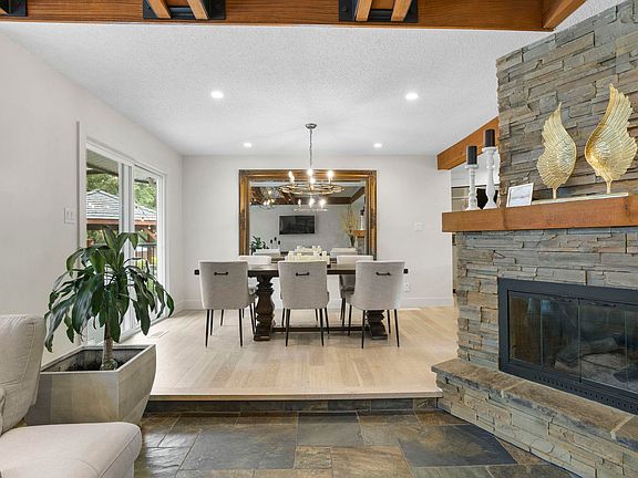 Stunning fully renovated Rancher with Basement on a desirable dead end road! Homes rarely come up for sale on this street. Open concept living boasting expansive & oversized windows in the living room, double sided fireplace upon entry, bright white kitchen with quartz countertops and S/S appliances, 3 bedrooms upstairs with the Primary Bedroom boasting a 5 piece spa ensuite bathroom with WIC and a seperate deck. Basement offers a spacious recreation room, 2 large bedrooms and third room perfect for crafts. Wine cellar, AC, double garage with 2x EV chargers, mud room with laundry & plenty of storage. Entertainers backyard with deck overlooking the yard, securely enclosed saltwater pool, a covered hot tub under a gazebo, and 2 sheds. Seperate parking down below can park your 2 trucks also!
