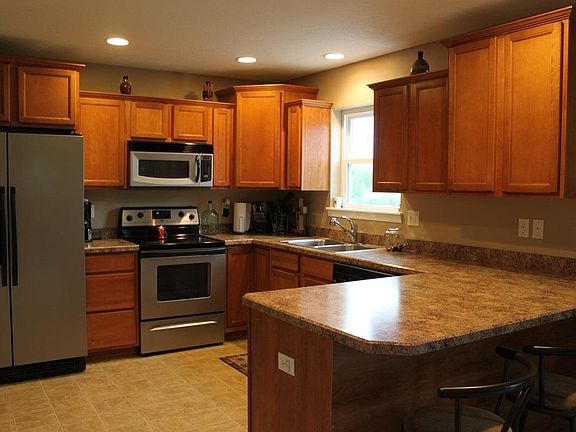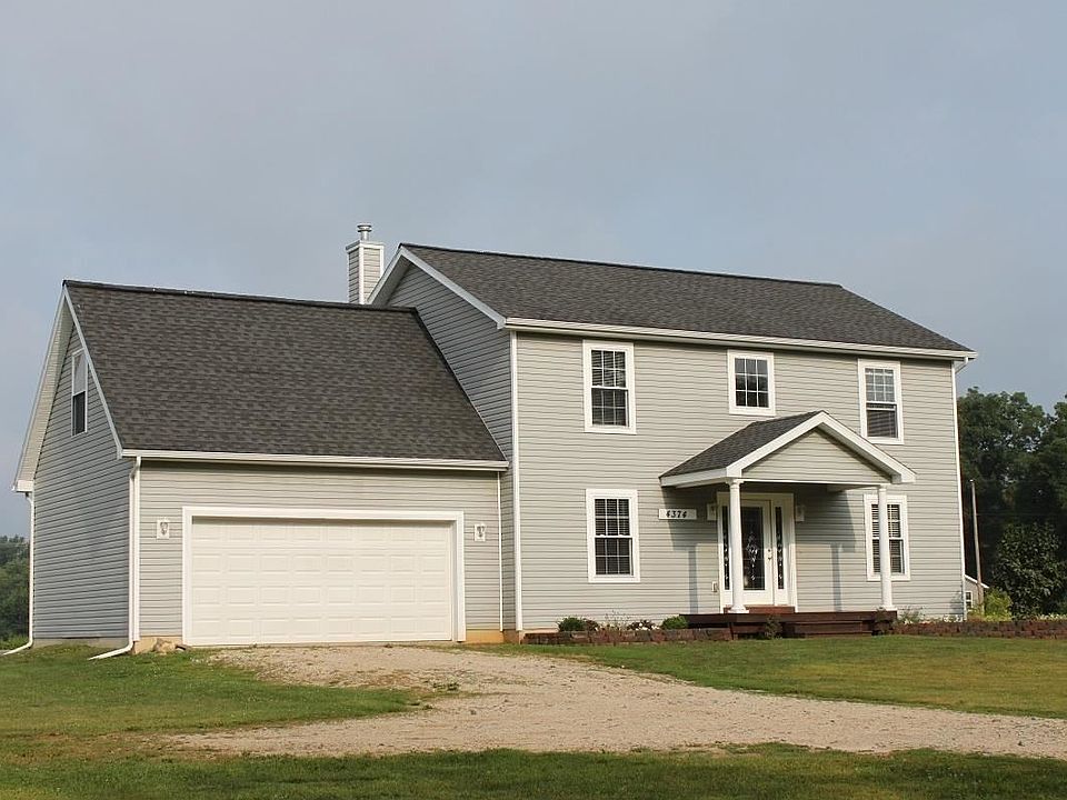 Maple kitchen cabinets with crown molding. Neutral colors throughout, archways into formal dining, open floor plan in living space. The basement ceilings are 10' tall great for future finished space, 2 story foyer, 2 x 6 exterior walls. Concrete patio off deck new in 2012. Possible land split on parcel. Move in condition home nicely decorated home nice country setting.