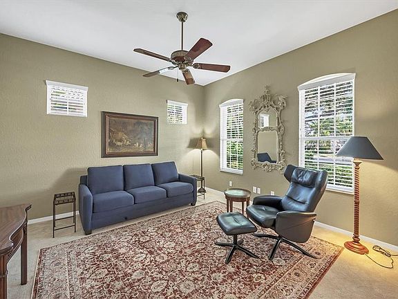 Private Pool Single Family Home Next to IMG Academy: Fully furnished, DOG FRIENDLY, maintenance free, charming, filled with natural light, two-bedroom, two-bathroom plus den and a two-car garage. At almost 2,200sq ft, this home is nestled in the desirable and beautifully landscaped The Greens at El Conquistador neighborhood. The home offers tall, coffered ceilings throughout the main living area and a comfortable open floor plan with split bedrooms. The large and spacious primary bedroom with a high tray ceiling, has a bathtub, walk-in shower and expansive walk-in closet. The second bedroom and guest bathroom, together with its tiled walk-in shower, are off the main entrance. The den is outfitted with a brand-new sleeper sofa for your guests. A generous-sized eat-in kitchen with stainless steel appliances and granite counters opens up to your private oasis consisting of a screened in patio with a heated pool and hot tub. There is also a laundry room with a full-sized washer and dryer. Just minutes to Publix, Target, Home Goods, First Watch and Starbucks. Twenty minutes to the beaches on Longboat Key and Anna Maria Island as well as to downtown Sarasota and its incredible dining options. Electricity (up to $200.00/month), water (up to $100.00/month), sewer, garbage collection, internet, basic cable, and pool/yard maintenance included with rent. The stated rate is for a lease of at least 6 + months. The rate for a 3 month lease is $6,500/month plus applicable short-term fees/taxes, 6 months or more $4,999. First month's rent, last month's rent and security deposit required to reserve. Schedule your tour today!