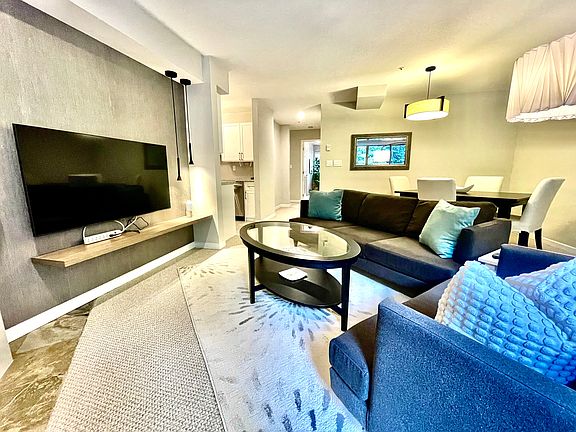 Extra spacious and bright, fully furnished 1-bedroom and 1.5-bathroom townhome located in the Valhalla complex across from the Marketplace. The bedroom has a queen bed and ensuite bathroom. There is also a half bathroom in the unit. Both bathrooms and kitchen were recently renovated including stainless steel appliances in the kitchen. There is a large laundry room with a washer/dryer. There is a small corner office in the living room area with a desk and office chair so you can work from home. The unit also comes equipped with a gas fireplace (gas is covered by strata), TV and private ground level patio. The complex offers a common hot tub, caged bike storage and one underground parking spot (max 1 car). It is available May 1st, 2025 until October 31st, 2025 (no extension or winter rentals). Suitable for a single or max one couple. Sorry no pets and no smoking/vaping. $3000/month plus utilities (hydro and internet/cable). Excellent references and credit required. Please note, due to the volume of applications received, only those shortlisted will be contacted. Thank you!