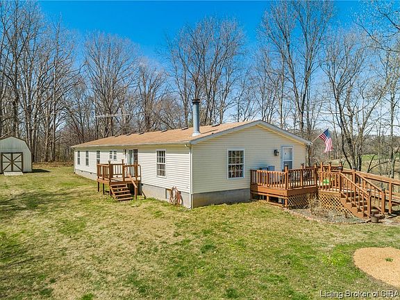 Welcome home to beautiful Corydon, Harrison county area. Country feels with all the amenities (shopping, dining & highway) just minutes away. This spacious updated home boasts of over 2000 sq. ft. of living space, with four bedrooms and two full bathrooms, along w/a shed that sits on 2.25 acres. Entering through the side entrance of the home, which is wheelchair accessible, is the Laundry room equipped with washer & dryer. You will be in awe with the large Livingroom complemented with a stunning mortar & stone, wood burning fireplace showcasing a darling mantle. Sliding door from the Livingroom leads to the back deck. Enjoy the open concept leading to the large kitchen arear with a pantry and abundance of cabinet space & an island area for extra preparation. You'll simply love the large dining room and family room for entertaining. Split bedroom concept. Three spacious bedrooms on the north side of the home and a large Master on the south side of the home. The master bedroom has a spacious walk-in closet with a large master bathroom, having a separate shower and tub. New interlocking flooring throughout the home and freshly painted. Yes, this home is as pretty as the pictures!