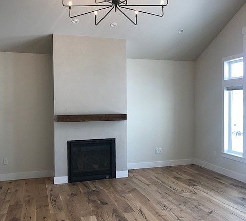 2014 sq ft Main level includes 3 bedrooms, 2 bathrooms, spacious kitchen, dining, living and laundry/mud room with engineered fumed white oak and tile flooring throughout. The living room has oversized windows and a gas fireplace.