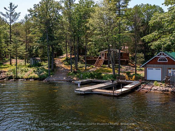 Waterfront Cottage on the Severn River. Enjoy year-round living at this charming four-season cottage nestled along the Severn River, offering 177 feet of pristine shoreline. Situated on a private, year-round road, this property blends comfort, function, and natural beauty .The home features walkouts from both the living room and primary bedroom to a spacious deck overlooking the water, perfect for relaxing or entertaining. The deep shoreline offers excellent swimming and fishing right off the double docks. Included on the property is an oversized insulated garage with a loft, ideal for additional storage or conversion into guest space. A dry boathouse with a marine railway makes boat storage a breeze, while a waterside bunkie provides cozy accommodations for visitors. Additional outbuildings include a wood shed and tool shed, adding to the cottages convenience and versatility. Whether you're seeking weekend escapes or a year-round retreat, this riverfront gem offers privacy, comfort, and endless waterfront enjoyment. 4390 Marr Lane vacant adjacent lot is being offered for sale and must close prior to the closing of 4376 Marr Lane.* and has EP on it