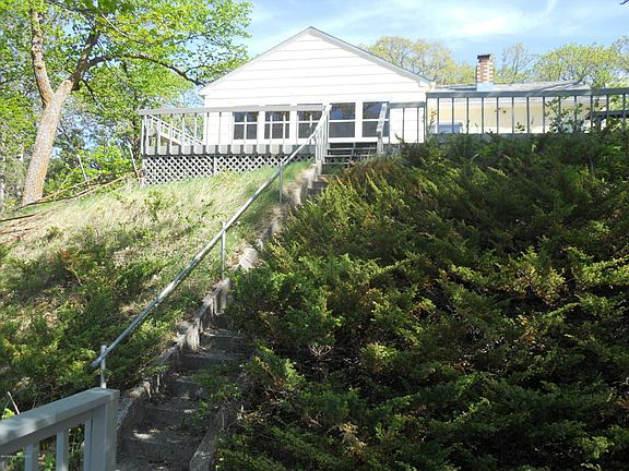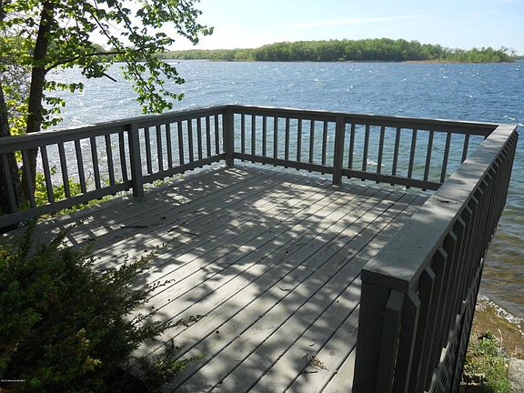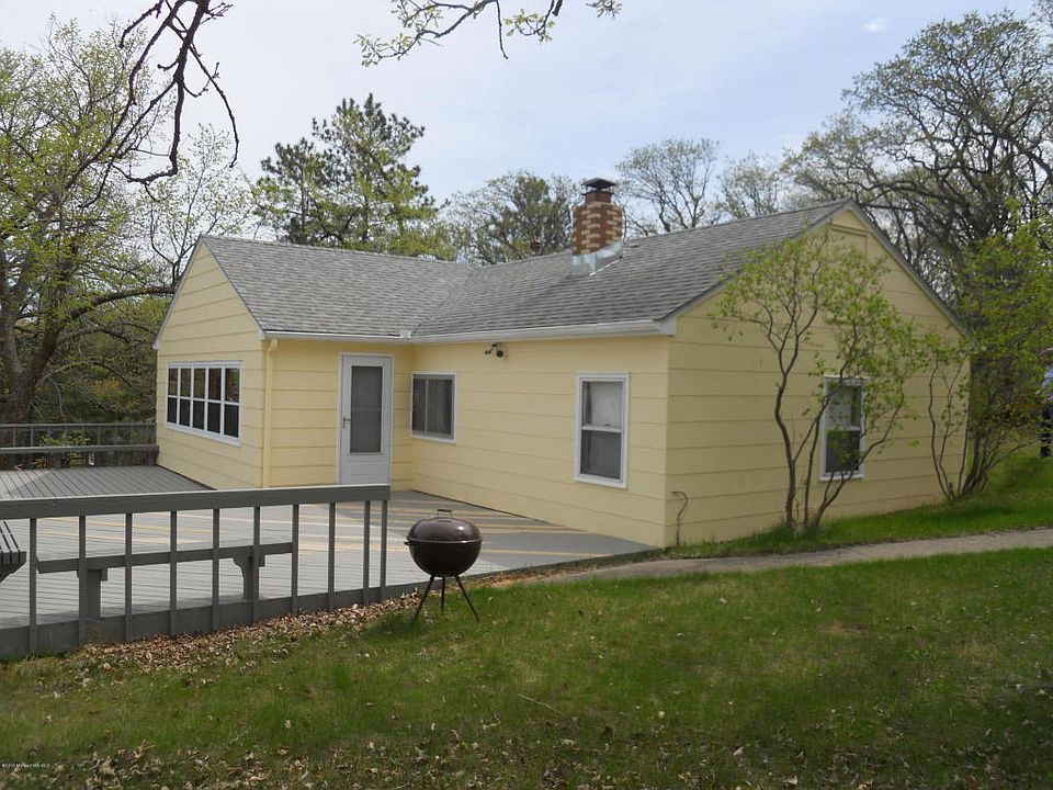 Seasonal cabin with all the right perks-186 feet lake frontage, sand bottom, 3 BR 2 bath cabin, fireplace, sunroom, multiple decks and a 936 SF garage/storage building. New floor covering and paint in 2017- just move in!