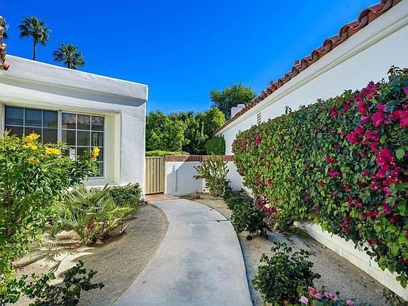 Back on Market - No Fault of Property! Welcome to Desert Breezes!Where everyday living feels like a vacation!Ideally located on the Palm Desert/La Quinta border, just across from the world-famous Indian Wells Tennis Gardens and minutes from world-class dining and shopping, this thoughtfully refreshed 3-bedroom, 2-bath pool town home is full of charm.Set on a private cul-de-sac, the home offers a bright, open layout with soaring ceilings and large windows that fill the space with natural light. The spacious primary suite overlooks the courtyard, and both guest bedrooms are generously sized.Step outside to your private lush backyard retreat featuring a sparkling oversized pool, spa, fountain, and a private gate that opens directly to the greenbelt, perfect for morning walks or evening strolls.As a resident of Desert Breezes, enjoy resort-style amenities including three large pools, 8 spas, lighted tennis and pickleball courts, a state-of-the-art fitness center, and a clubhouse, all included in the low HOA dues. Rentals of 30+ days are permitted, offering flexibility for personal use or seasonal income.Don't miss this chance to own a private desert escape in one of the valley's best locations. Home can also be offered turnkey furnished for added convenience.